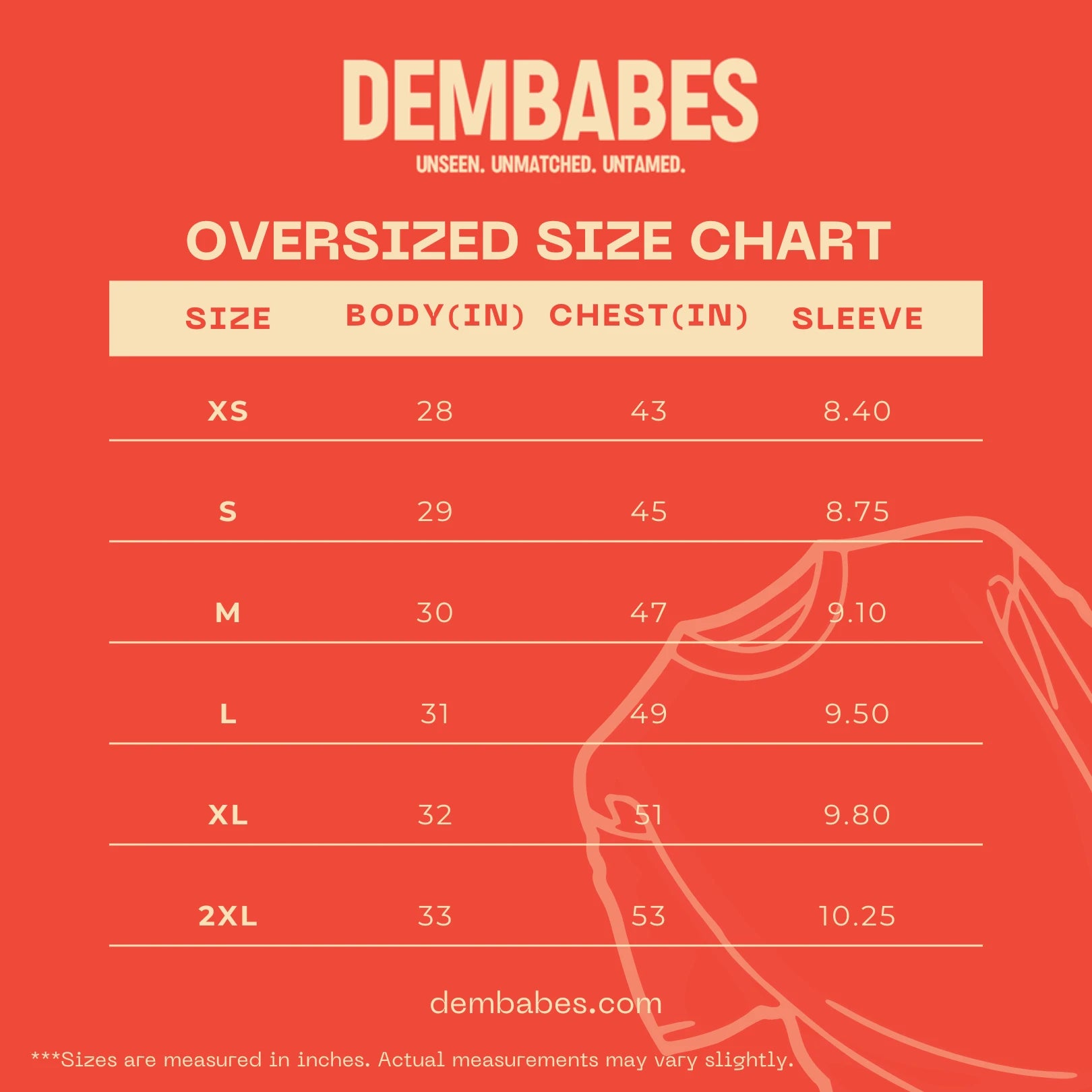 Designed for those who live for late-night thrills and bold fits, this oversized tee offers comfort, confidence, and that classic DEMBABES attitude.